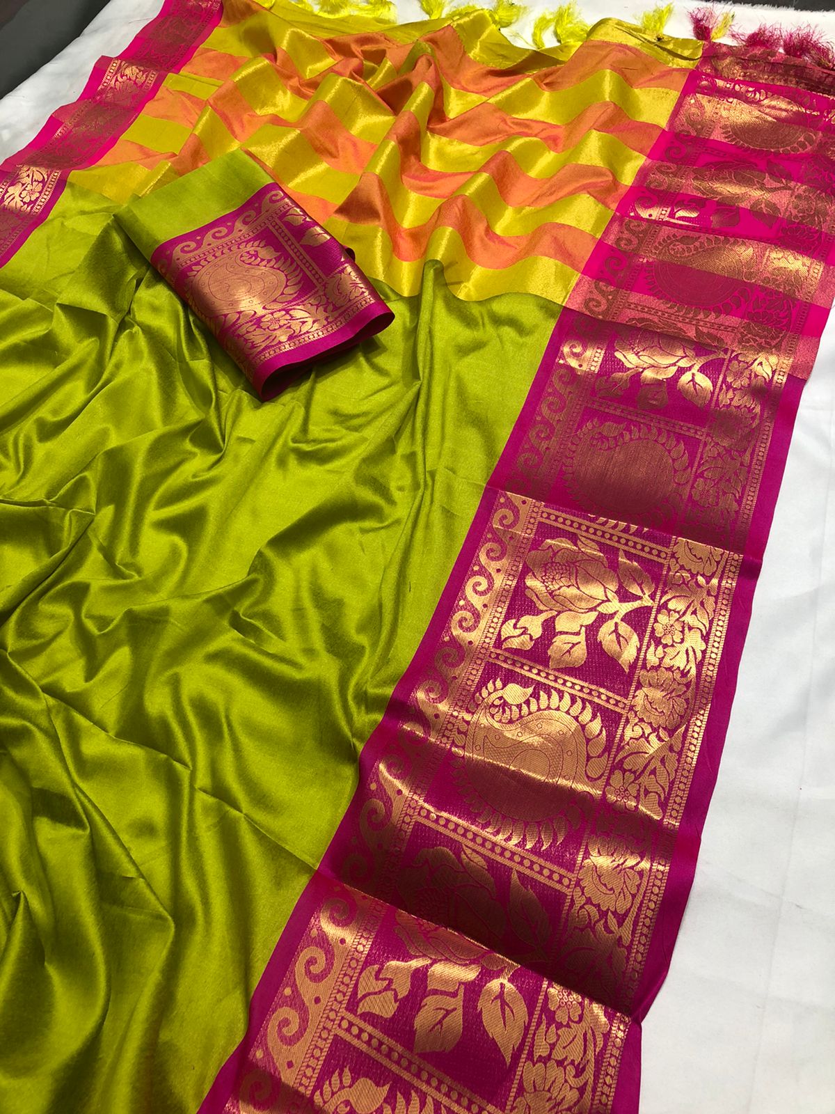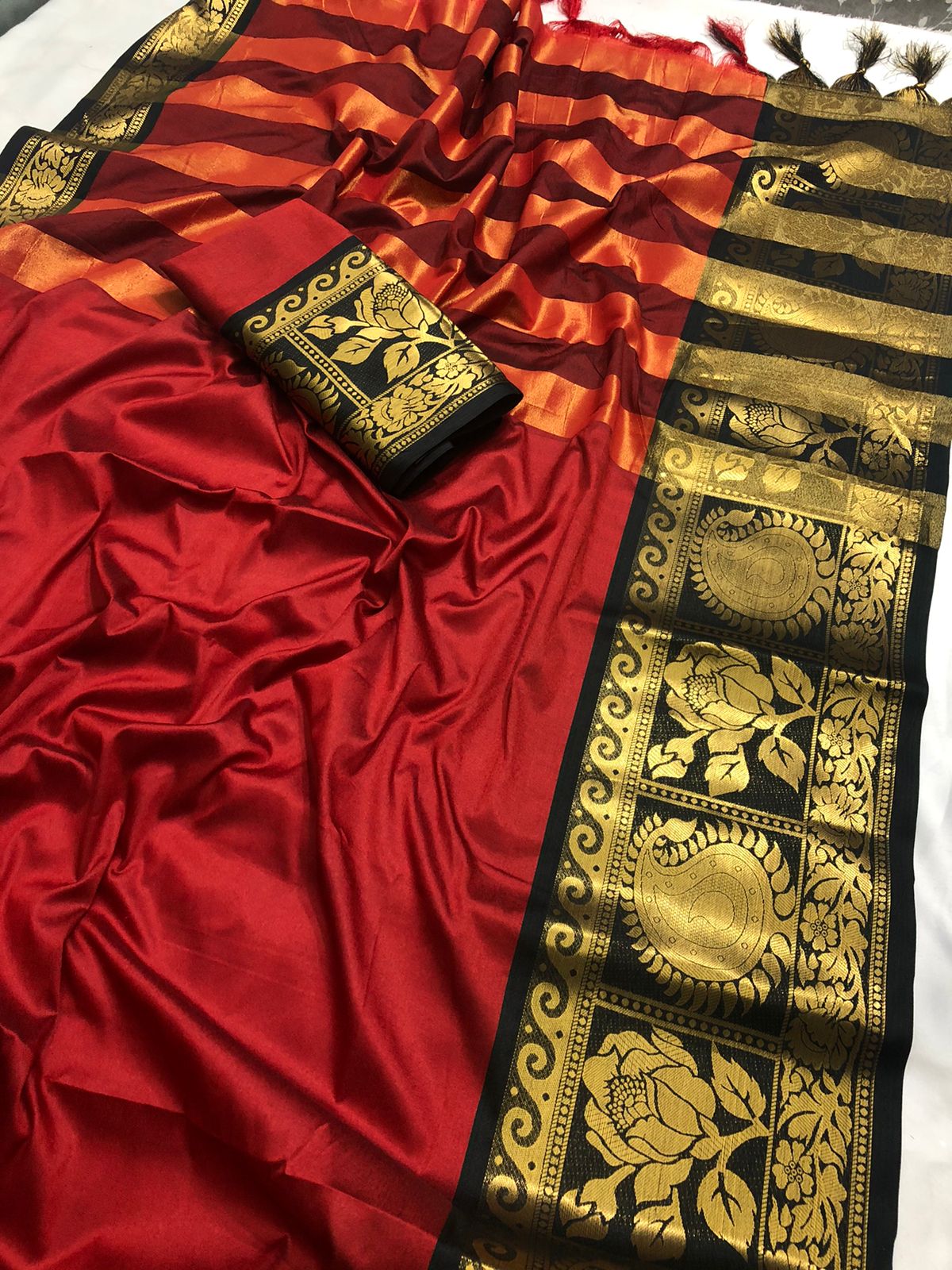 Fabric - Pure Mercerised Cotton Silk in Exclusive weaving Border Design!!