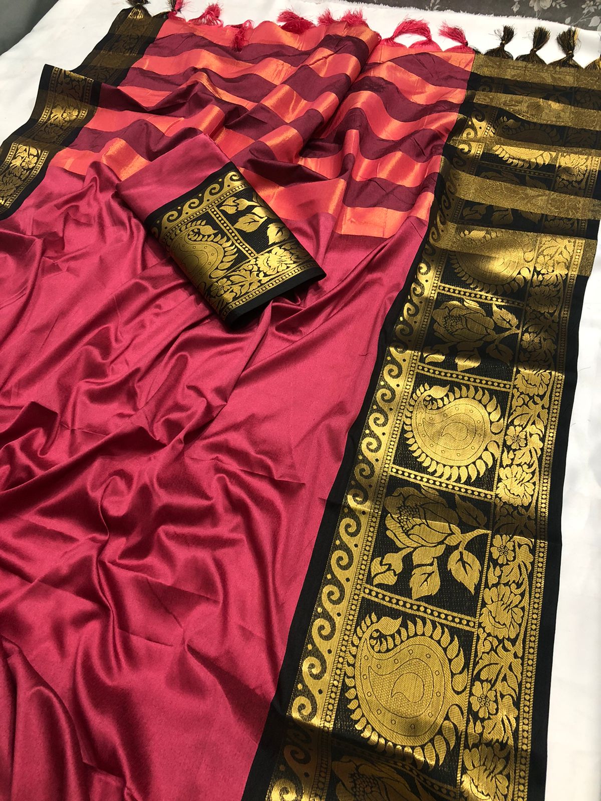 Saree 5.5 MTR and 0.80 MTR Contrast Matching Blouse With Contrast Pallu with Tresssal