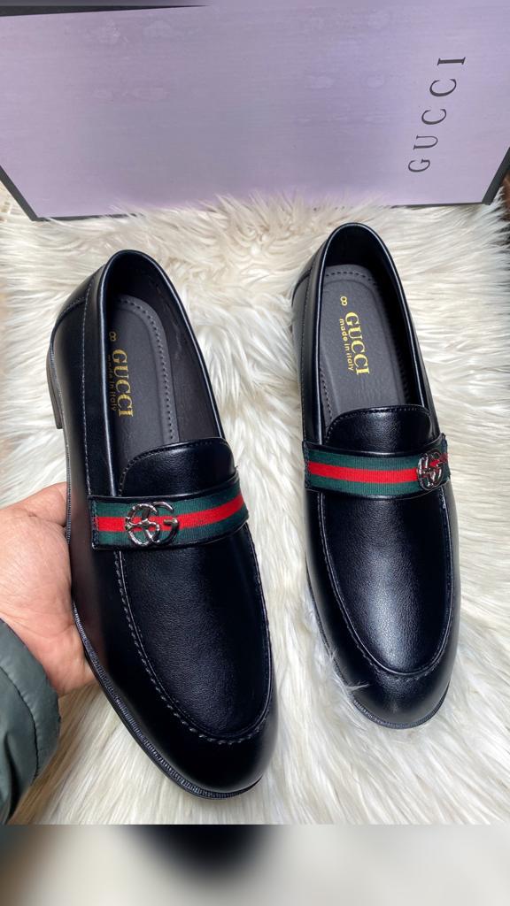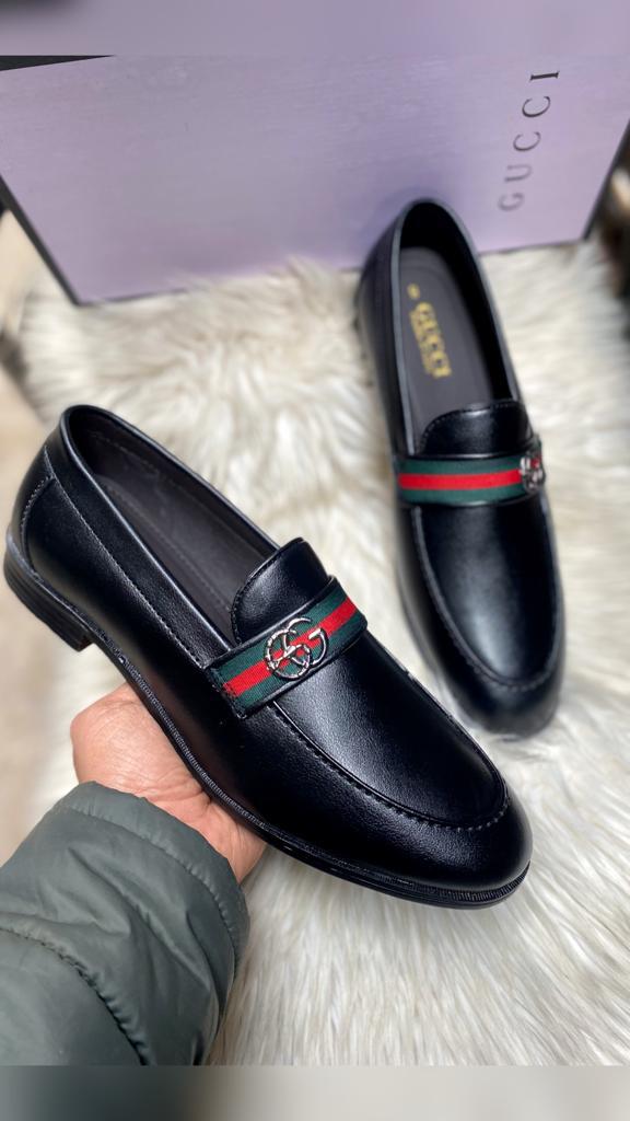 An emblematic Gucci silhouette, the black leather loafer is completed by the House's Horsebit hardware and the Web stripe in green and red. Symbols and shapes from the archives appear throughout the latest collections, paying tribute to the origins of the brand.