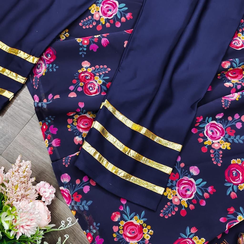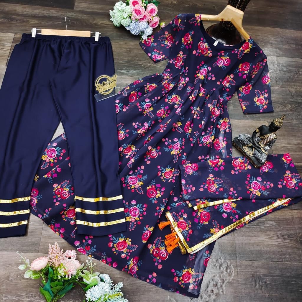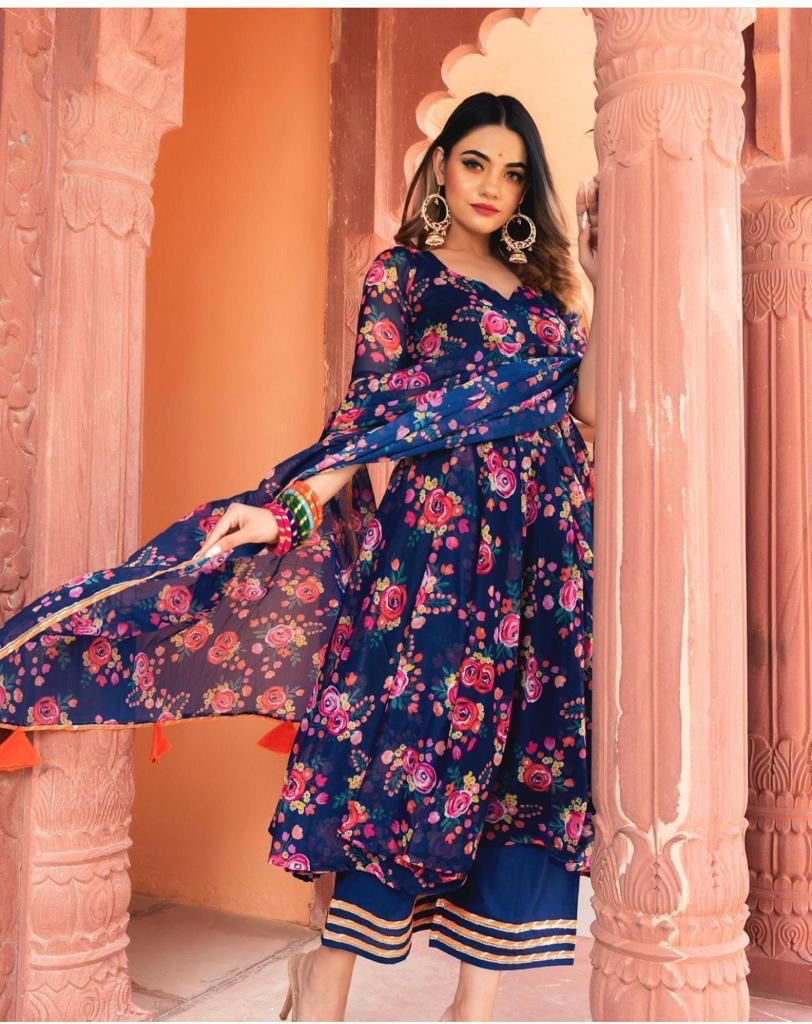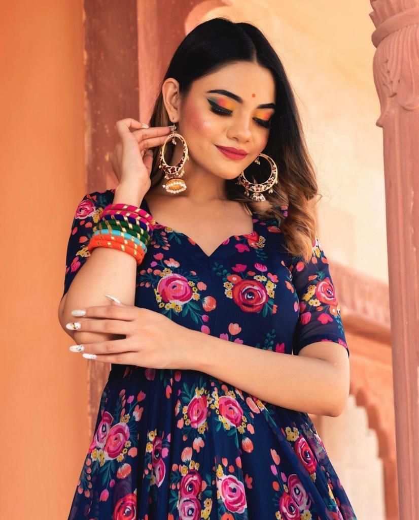 Beautiful fox Georgette with Incorporate minimalistic styles into your ethnic yet modern line-up with this elegant gown. With the eternally soothing shades of flower design, this ensemble is as comfortable as its chic. Pair it with your favorite heels and win all the limelight.
