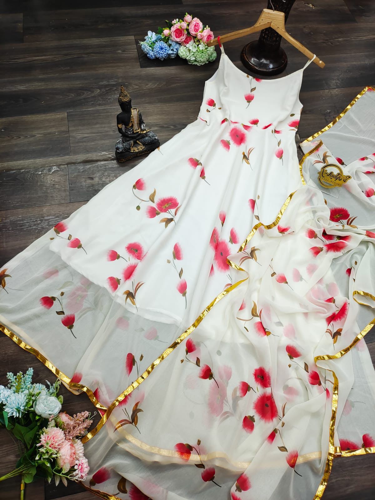 Gorgeous, Glorious and Glamorous are going to be your ruling worlds on your next date. Promising a slimmer look with our classic maxi dress style this time, print made it more fashionable with ruffle stiches.