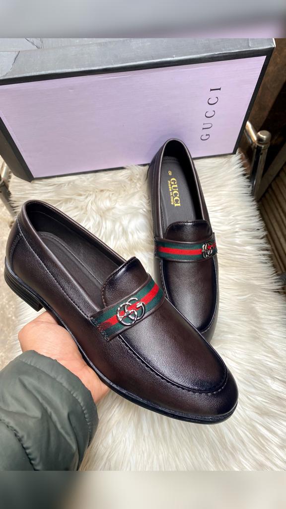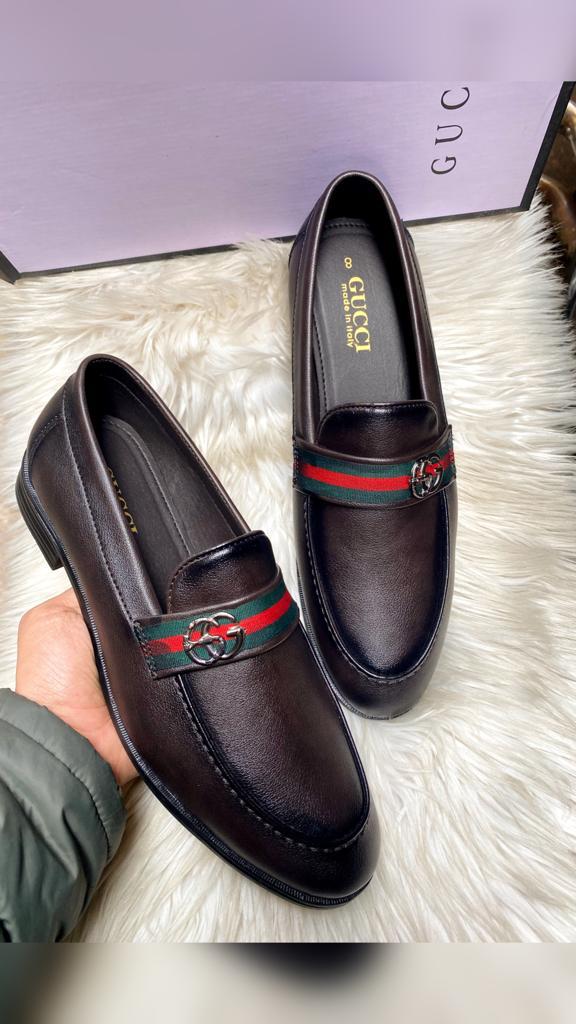 An emblematic Gucci silhouette, the black leather loafer is completed by the House's Horsebit hardware and the Web stripe in green and red. Symbols and shapes from the archives appear throughout the latest collections, paying tribute to the origins of the brand.