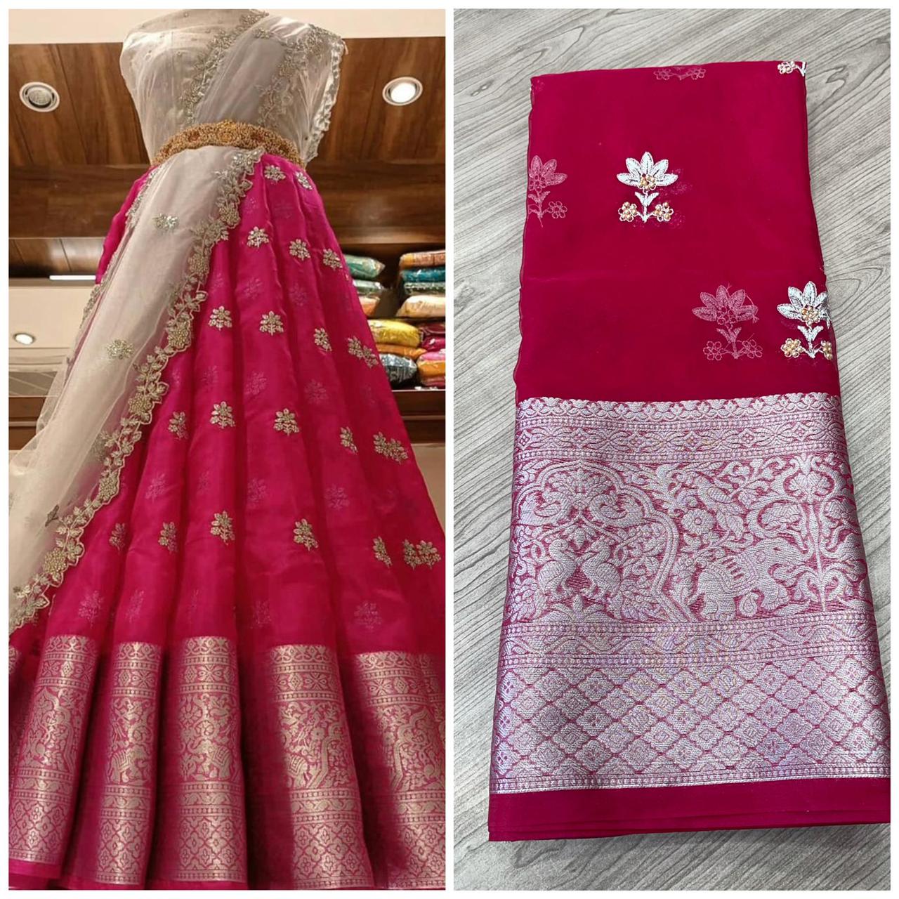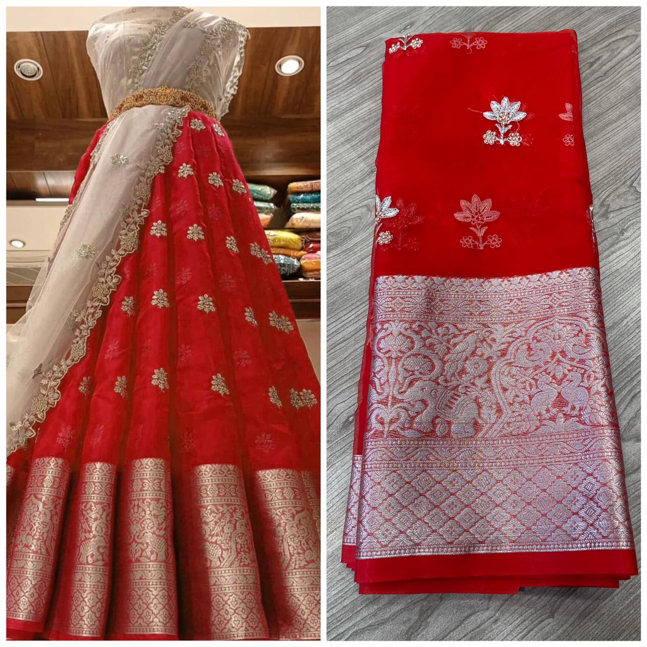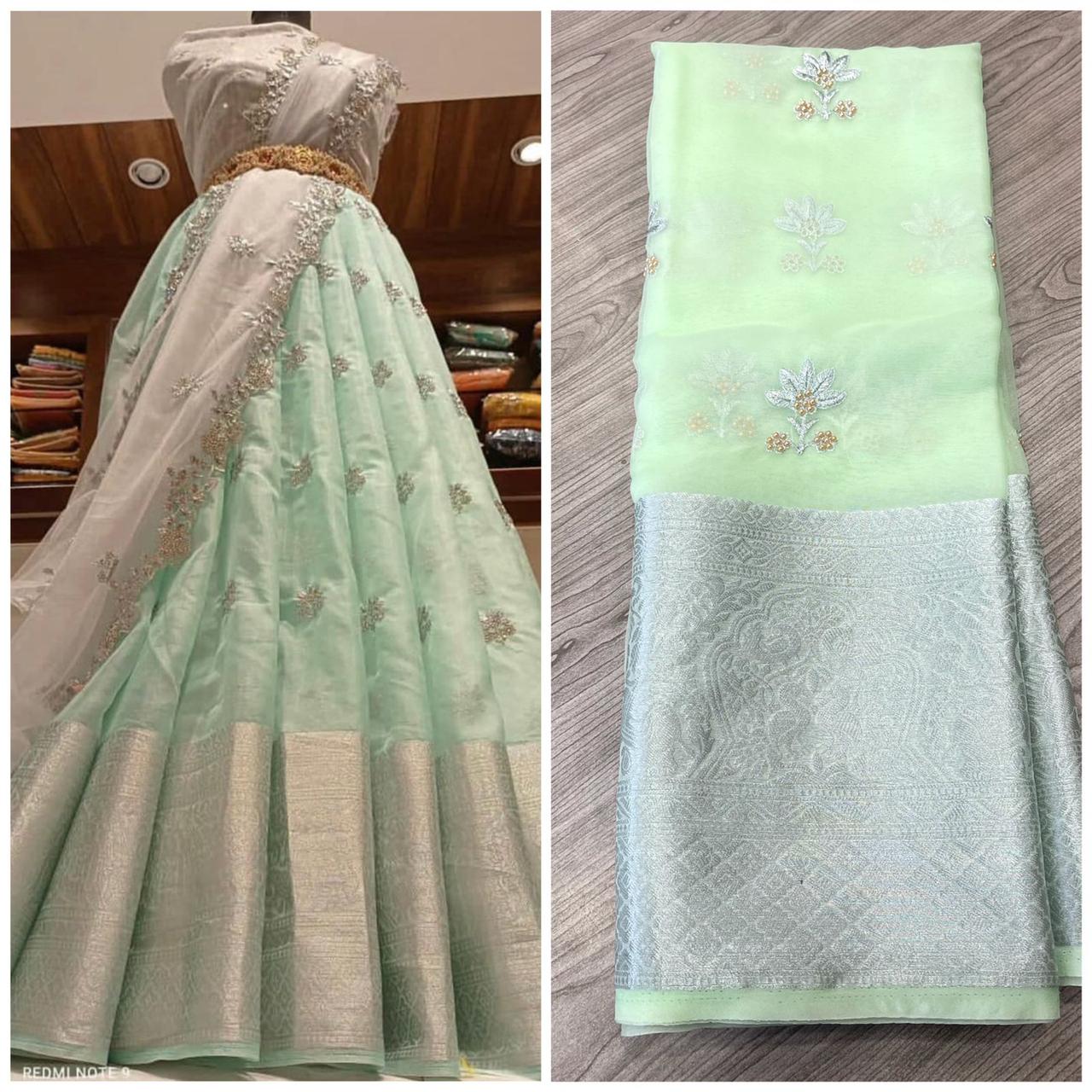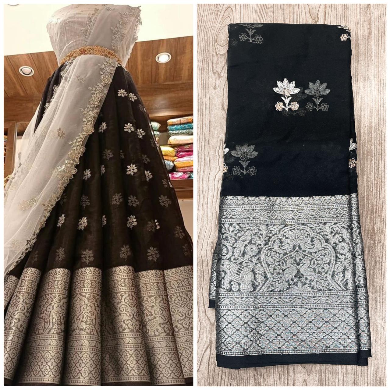 Fabric Nylon Organza Jaccard with heavy sequins work Lehenga with Cut Work Dupatta & Blouse !