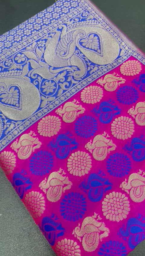 Traditional Kanjiveram pattu Zari Silk weaving saree With lovely self peacock weaving in all saree and Pallu WEAVING at its finest and most classic!