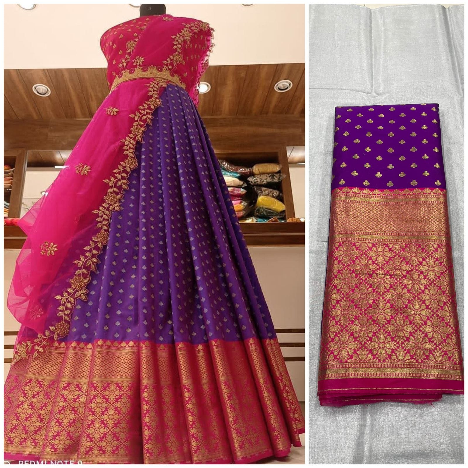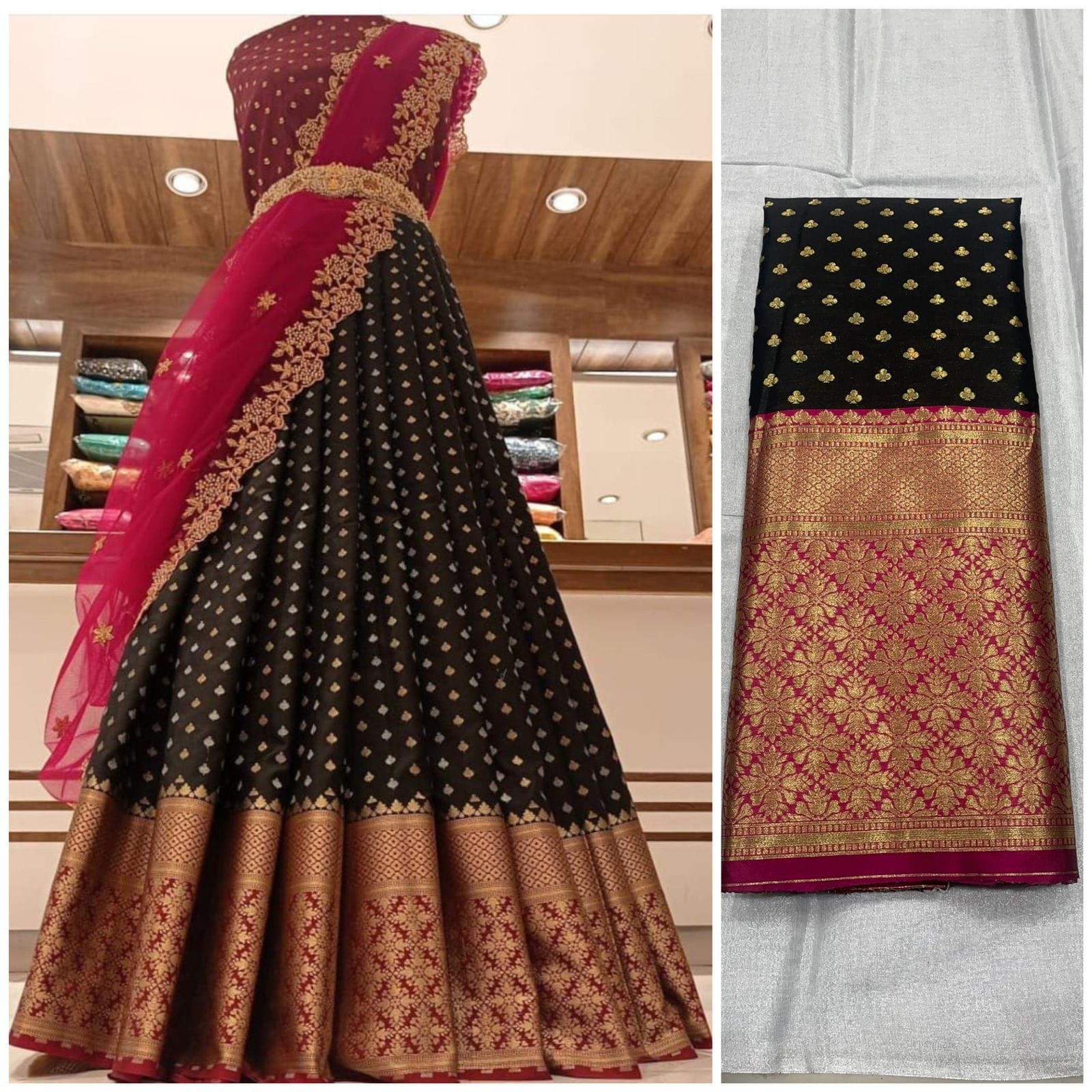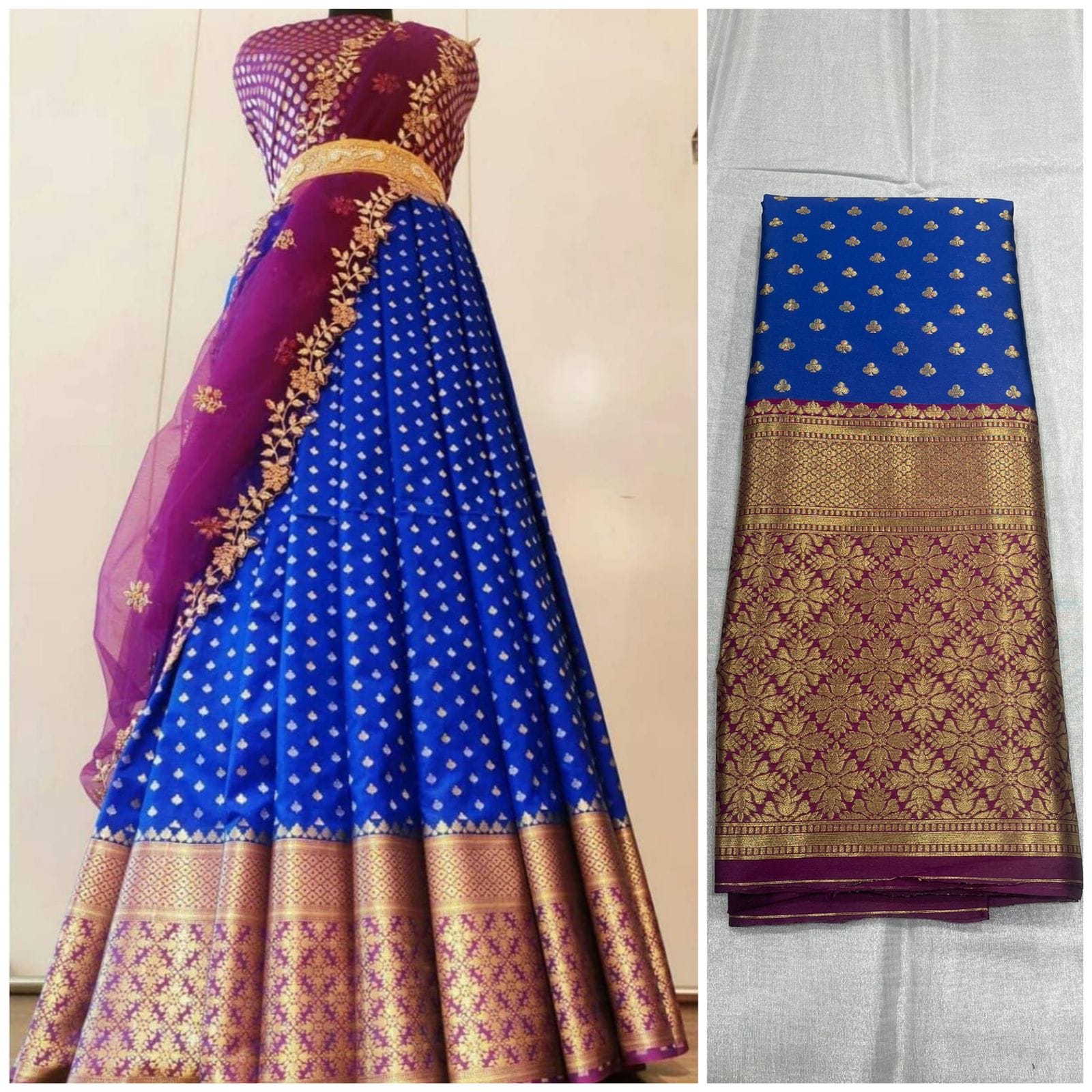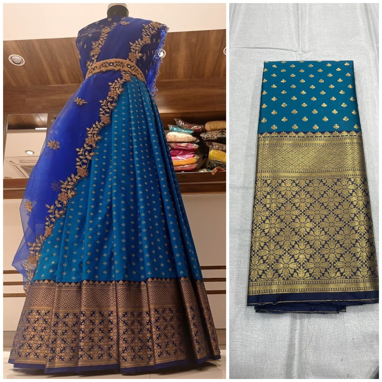 Kanjiveram Silk Zari lehanga with blouse along with cutwork Duppta !!