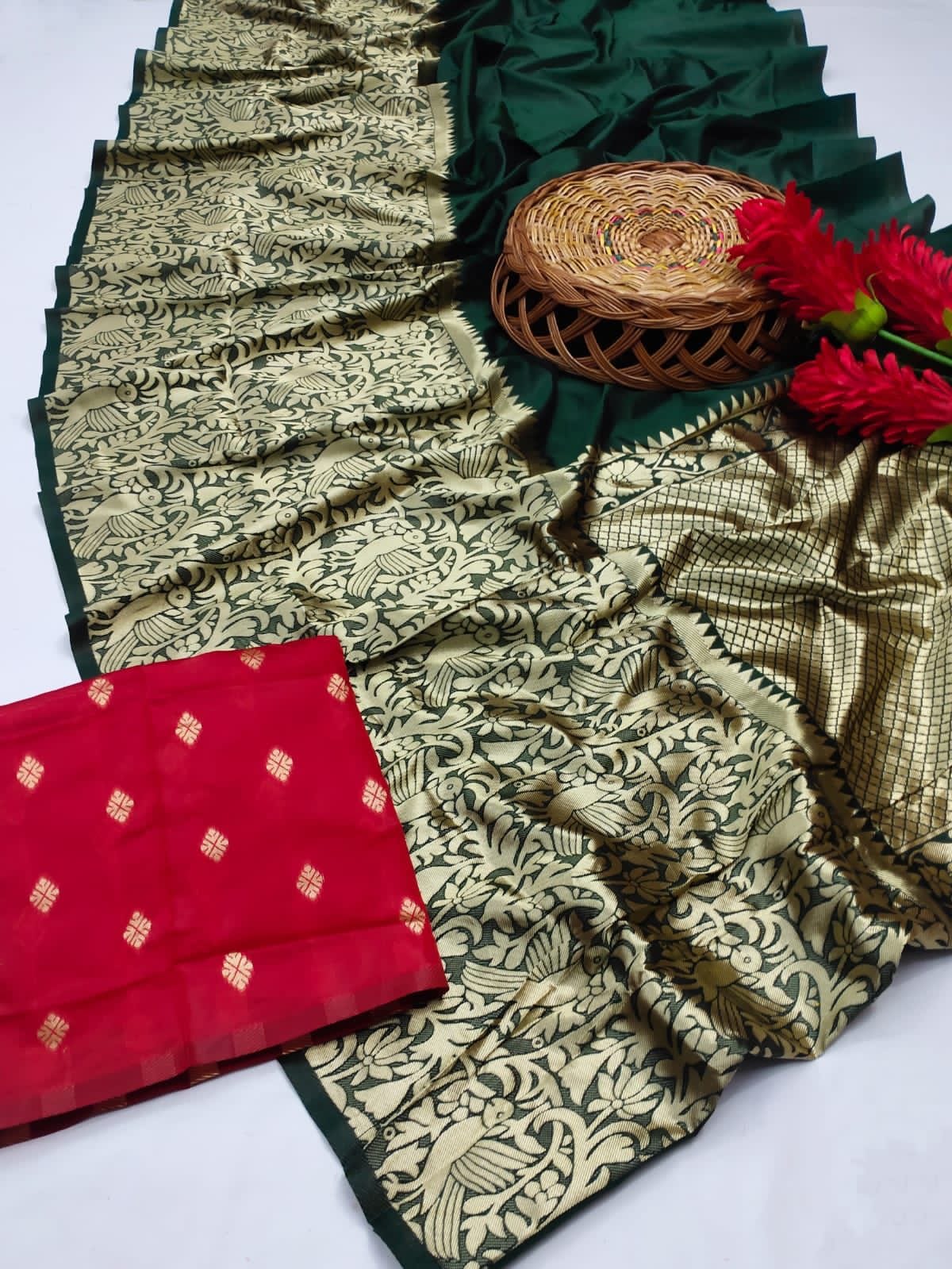 Fabric- Cotton Blend, Work- Weaving Work, Size- Saree- 5.20Mtr, Blouse- 0.8Mtr, Contains- It Has 1 Piece Of Saree With Blouse Piece,