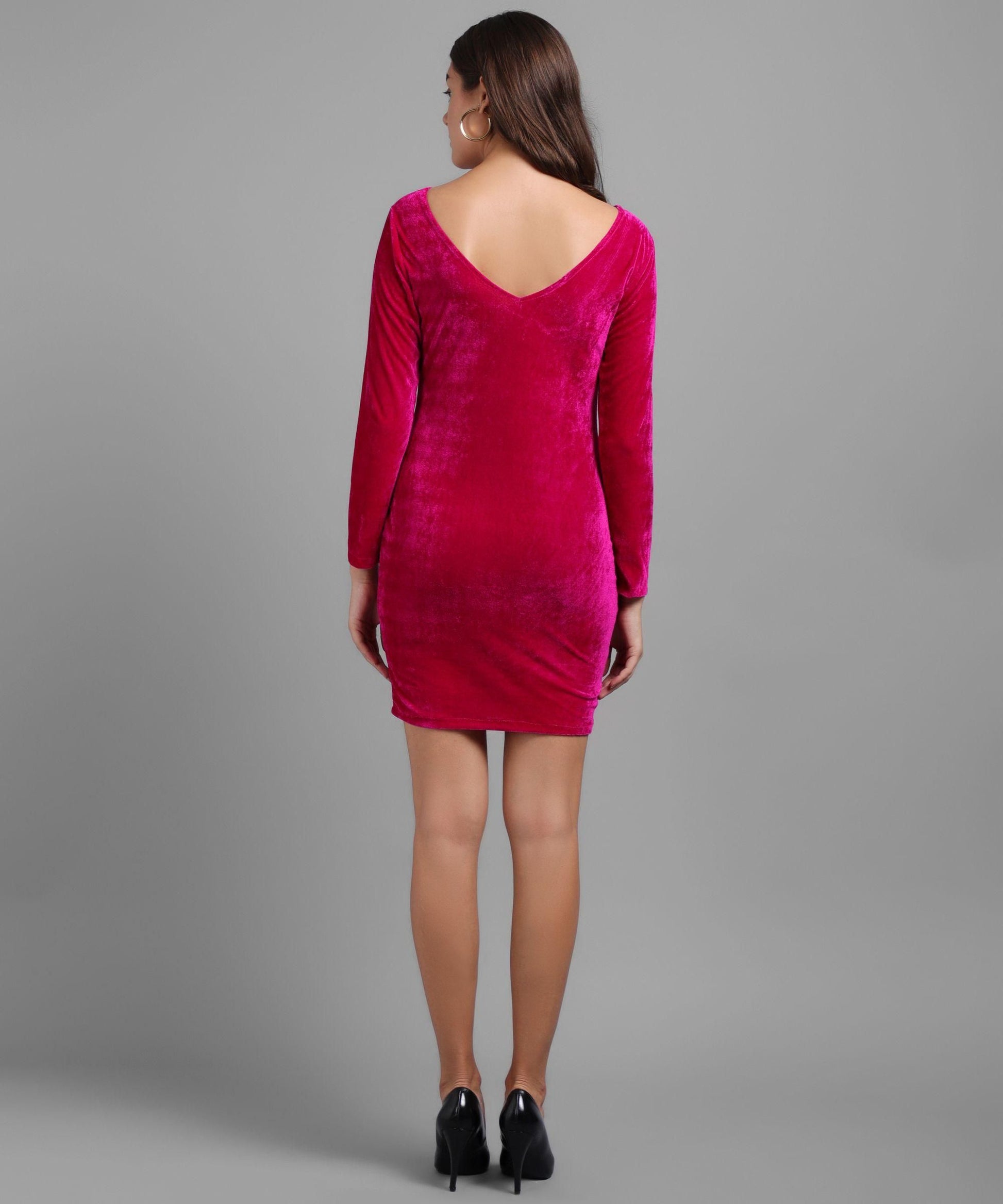 Product Name: Vivient Women's Solid Pink Velvet Short Dress
